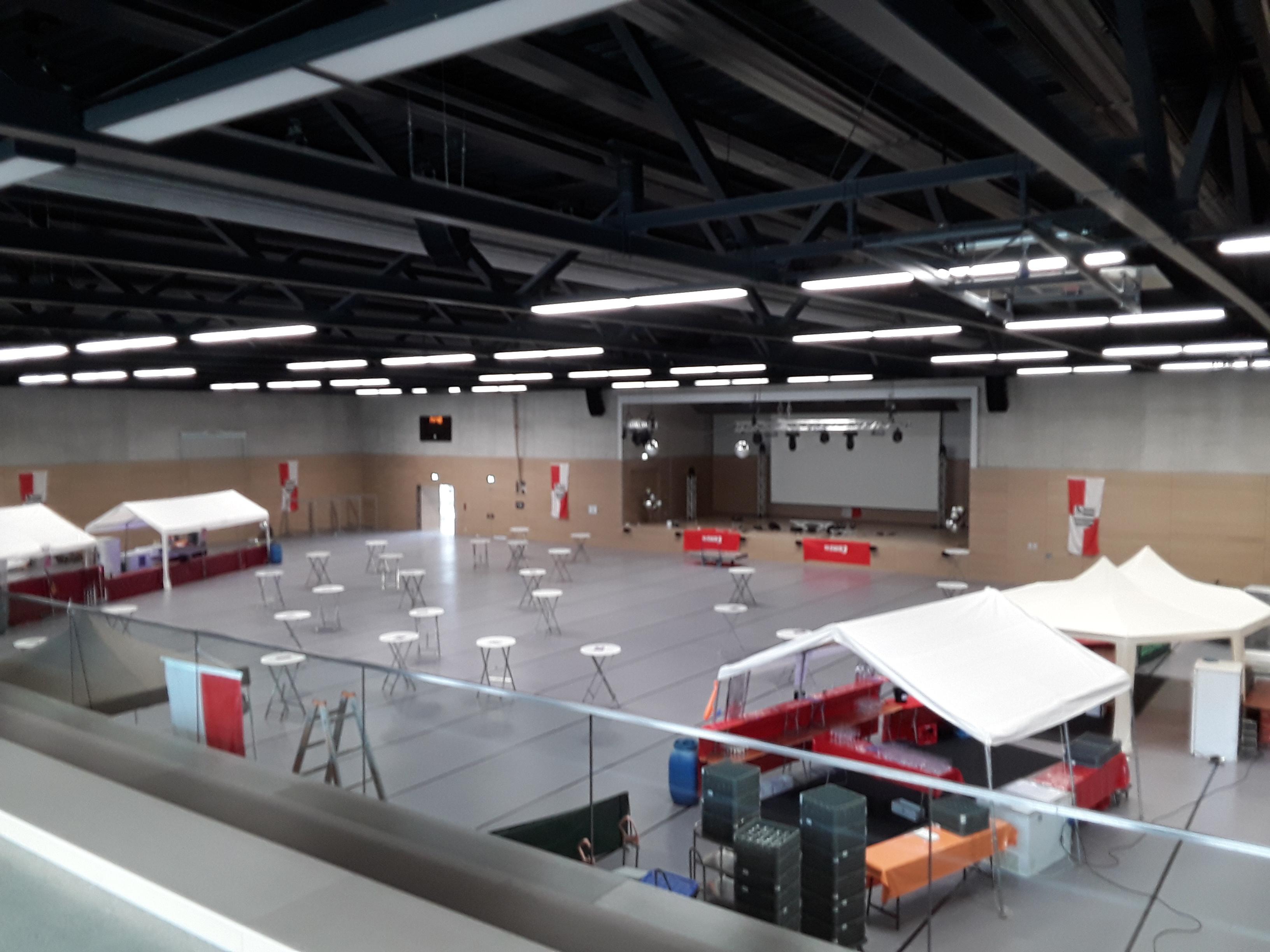 Einweihung Rheinhessenhalle 2023 Bühne mit Instrumenten