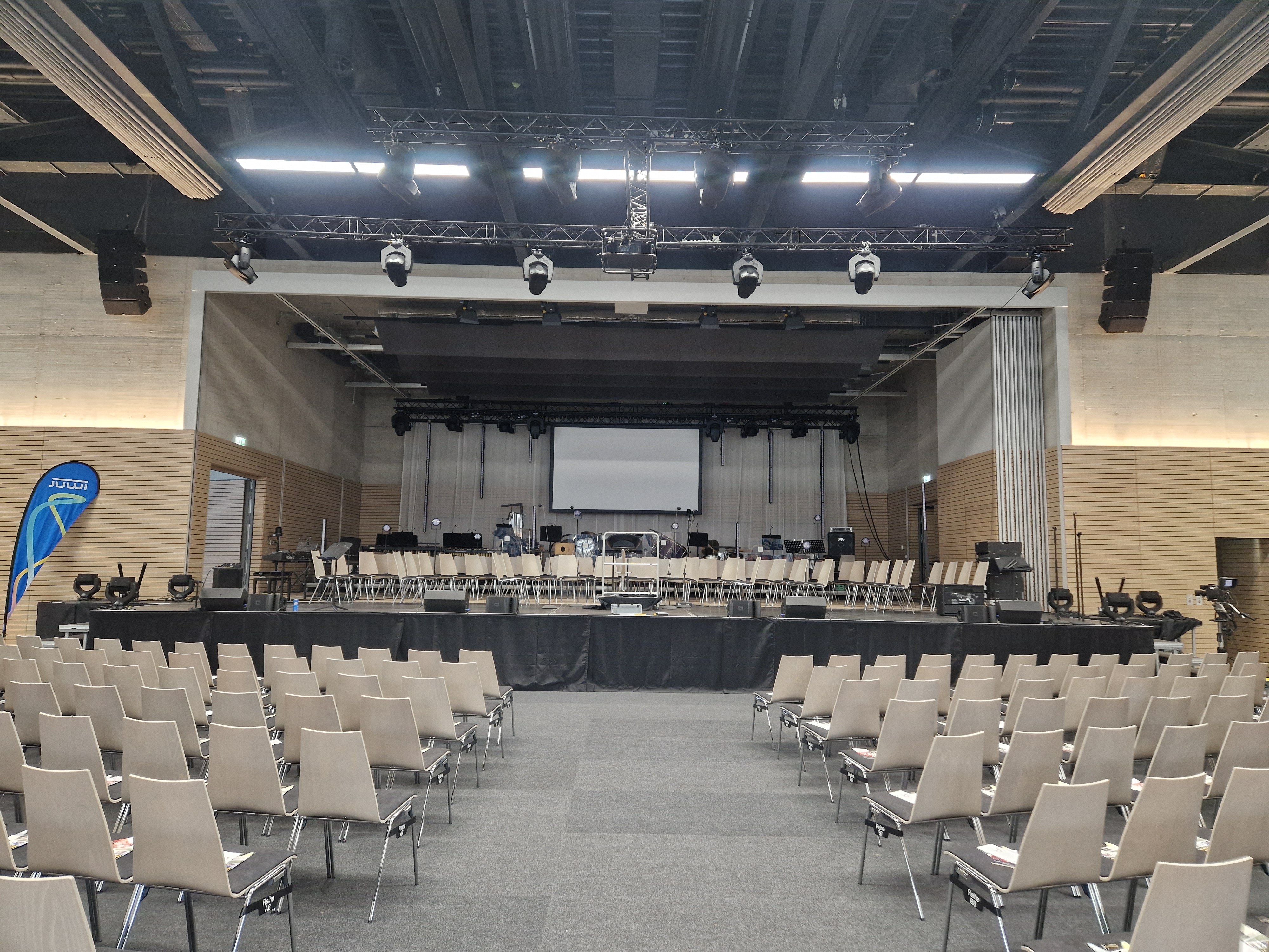 Einweihung Rheinhessenhalle 2023 Bühne mit Instrumenten